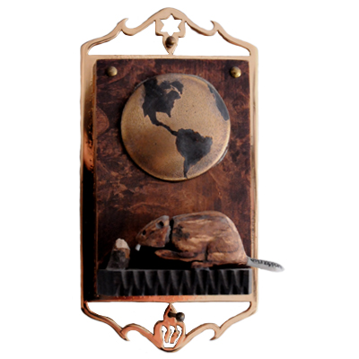 This hand crafted Bobblehead Beaver Mezuzah was created by renowned artist Ric von Neumann.